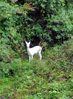 住田町 令和7年10月17日付 7面 「神の使い」か── 世田米に白いシカ出没 「神の使い」か──。住田町世田米地内で、「白いシカ」が目撃されている。秋が深まり色づき始めた山林にたたずむ真っ白な姿。アルビノか白変種の個…