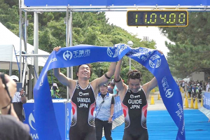 その他 令和7年10月17日付 7面 初タッグでアジア王者に 大船渡市末崎町出身・寺澤選手 トライアスロンパラ選手権 山田選手(東京)のガイドで出場 千葉で 千葉県千葉市・稲毛海浜公園のアジアトライアスロン公認コースで開かれた「アジアトライアスロンパラ選手権・パラカップ」のPTVⅠ男子で、大船渡…