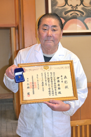 大船渡市 令和7年12月4日付 6面 伊藤さん(猪川)に功労者表彰 日本食品衛生協会 長年の経営と指導たたえ 公益社団法人日本食品衛生協会(小林健会長)による本年度の食品衛生功労者表彰に、気仙では唯一、大船渡市猪川町で飲食店「味処暫」を営む伊藤岩郎…