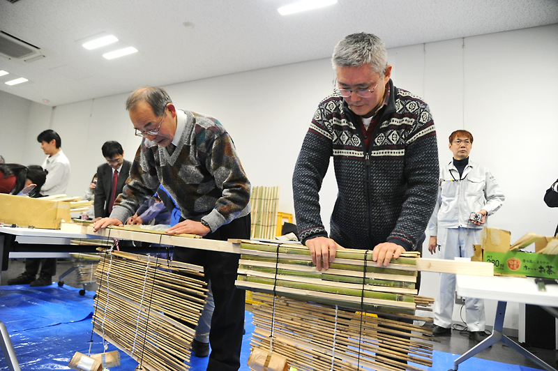 終了後は鈴木理事長が高田松原における震災前の植生について、県立博物館専門学芸員の鈴木まほろ氏が県内の震災後の植生をテーマに講演。休憩をはさみ「強い風からマツ苗を守ろう!高田松原の竹簀づくり」として、守る会メンバーが実演を行った。