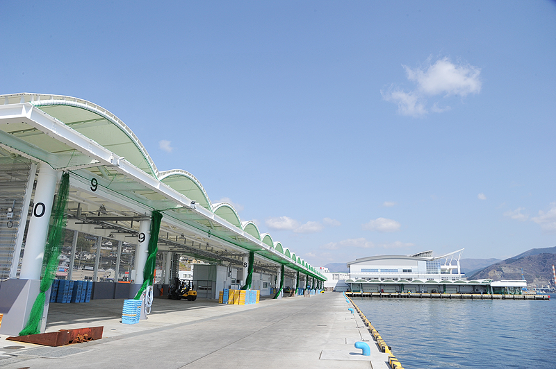 今年2月には、魚市場南側ふ頭にサンマやイサダ専用の上屋が完成して3月からのイサダ漁で使用されているほか、新魚市場供用開始後は一部魚種対象ではあるがタブレットによる入札も行われており、作業の高効率化が図られている。