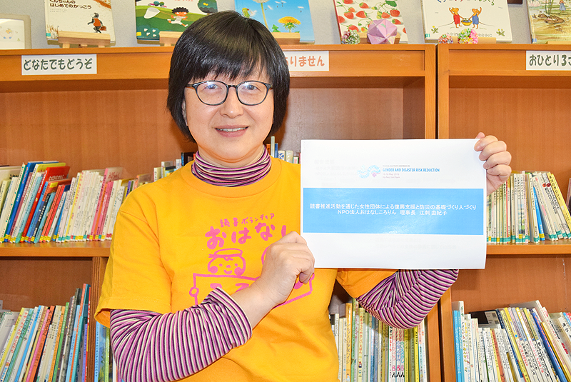 さまざまな女性問題を解決するための国連機関・国連ウィメン(UN Women)が主催する「ジェンダーと防災に関するアジア太平洋地域会議」は16日(月)から19日(木)までの4日間、ベトナムの首都ハノイで開かれる。このうち、17日(火)に行われる「ジェンダー平等と防災の関係性を探る」をテーマとしたセッションには、大船渡市のNPO法人「おはなしころりん」理事長の江刺由紀子さん(54)が発表者の一人として参加。同法人が市民レベルで展開している活動と防災との関係などについてスピーチするとともに、他国での取り組みに対する理解を深め、日本の防災対策における女性の具体的なかかわり方を探る予定だ。