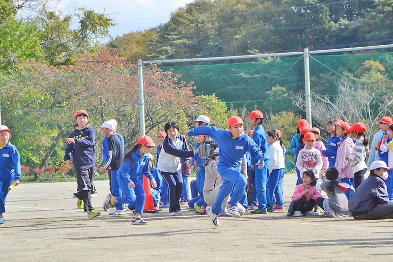 その後、おにごっこやリレーを実施。おにごっこでは児童らが校庭を縦横無尽に駆け巡り、待ちに待った「自分たちの校庭」の使い心地を確かめた。
