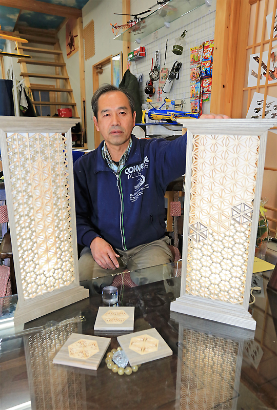 最近では和室を設ける家が少なくなったこともあり、組子を使った照明器具、ついたてなども考案。注文に製作が追いつかないほどだ。中村さんが「欄間や障子がなくても、こういうものを作れば組子を取り入れることができるかなと思って」と話す背景には、伝統と技術を途絶えさせたくないという思いも。