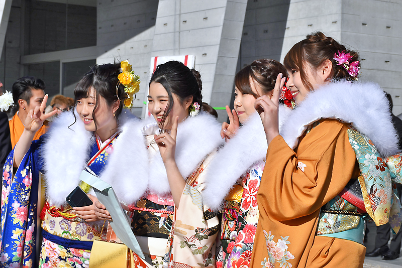 新成人らは家族や恩師の祝福を受け、大人としての第一歩に気を引き締めた。