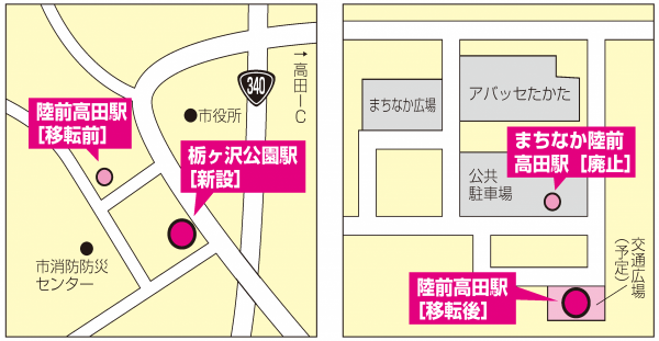 運賃や時刻表などの詳細は未定だが、現「陸前高田」駅と「まちなか陸前高田」駅の定期券利用者は、定期券の区間変更が必要になる場合があるとする。