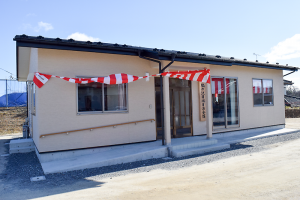 落成式では、震災犠牲者に黙とうをささげたあと、金野会長が「流失した会館を再建したいというのが私どもの当初からの悲願。これからは自治会の発展とともに、会員や近隣住民のコミュニケーションの場としてフルに活用してもらえれば」とあいさつ。建設の経緯を説明したあと、来賓の米崎地区コミュニティ協議会の新沼幸男会長、戸羽太市長、大坪涼子市議会議員がそれぞれ祝辞を述べた。