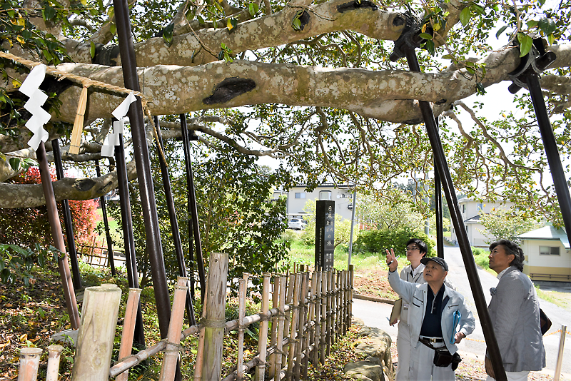 26年には市教育委員会が外部に委託し、樹勢診断を実施。木材腐朽菌が枯れ枝や傷口から侵入して腐れが起きる「材質腐朽病」の症状が確認され、28年には樹勢回復策がとられていた。