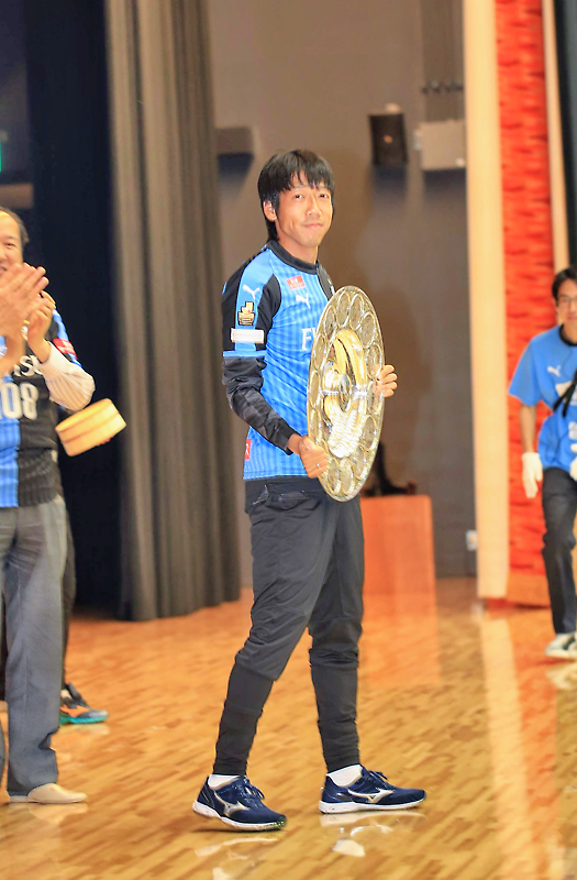 昨年のJリーグ優勝記念のシャーレを披露