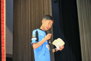 選手たちに対する感謝の手紙を読み上げる児童も
