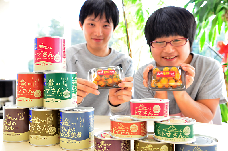 2年前から赤崎町の震災被災地に設けたハウス内で、フルーツトマト「赤崎元服トマト」の栽培に着手。生鮮用の規格から外れたトマトを加工して商品化しようと、施設を支援する認定NPO法人・難民を助ける会(東京都)と共同で「大船渡トマさんソース」を開発し、今夏から販売が始まった。