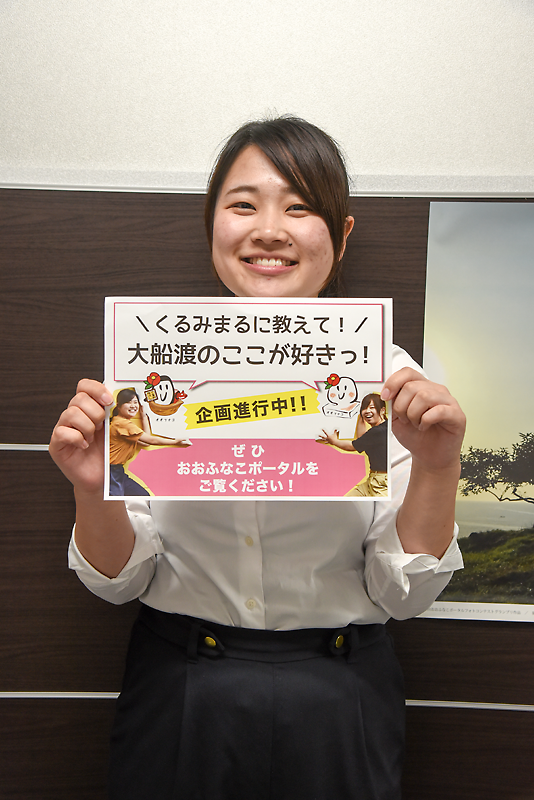 大船渡情報総合サイト「おおふなこポータル」(https://ohfunako-portal.com/)で18日(火)、県外の学生2人による新企画「くるみまるに教えて!大船渡のここが好きっ!」がスタートする。同サイトを運営する大船渡市の㈱アローリンクスでインターン中の学生2人が、市内の若者たちから聞いた「おすすめスポット」を巡るというもの。8月から1カ月余りにわたって行われてきたインターンシップの集大成でもあり、同社では多くの閲覧を呼びかけている。