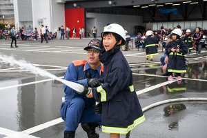 このほか、消火リレー対決や救助隊による訓練見学も実施。子どもたちは、まちの安全を守る消防士の業務の一端に触れながら楽しいひとときを過ごした。