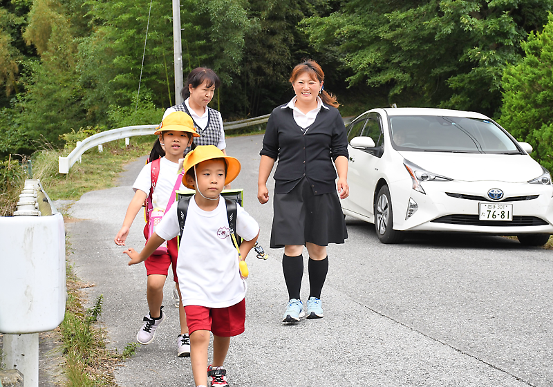 児童の主な下校ルートは三つ。児童に同行するこれまでの活動は、市内外の5人が登録する学校支援ボランティアと教員の限られた人員で維持してきた。