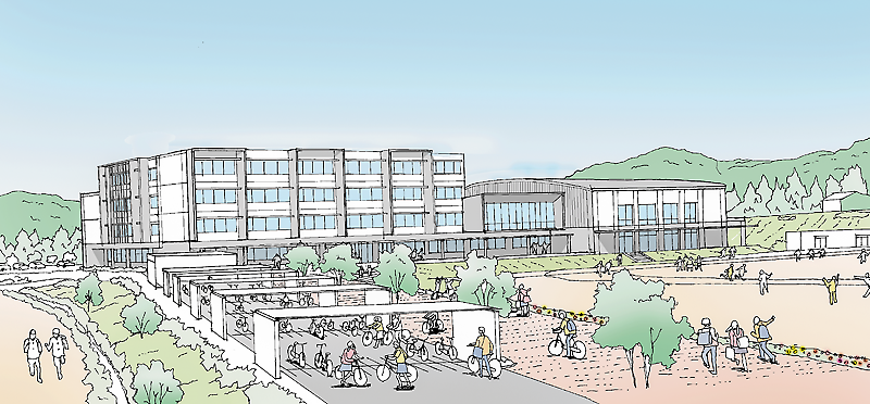 整備にあたっては、学習の習熟程度や興味、関心に応じた少人数指導に対応。バリアフリーへの対応や、生徒らが交流しやすい空間づくりも工夫する。さらに「開放区間」には、屋内運動場や武道場に加え、会議室や地域室も設け、地域コミュニティーの場としての利用も前提としている。