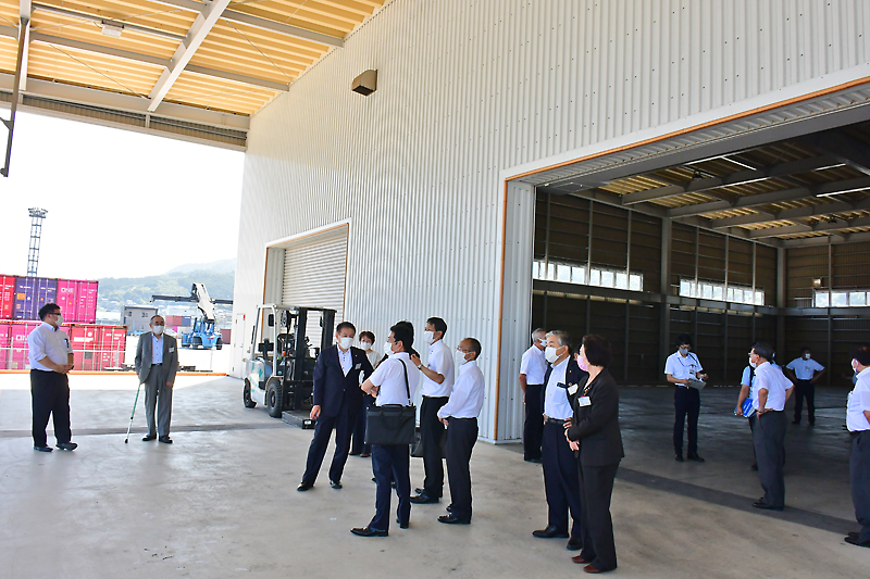 終了後は大船渡港を視察。先月復旧工事を終えたサン・アンドレス公園や、コンテナヤード内の上屋倉庫などを巡り、利活用の現状を確認した。