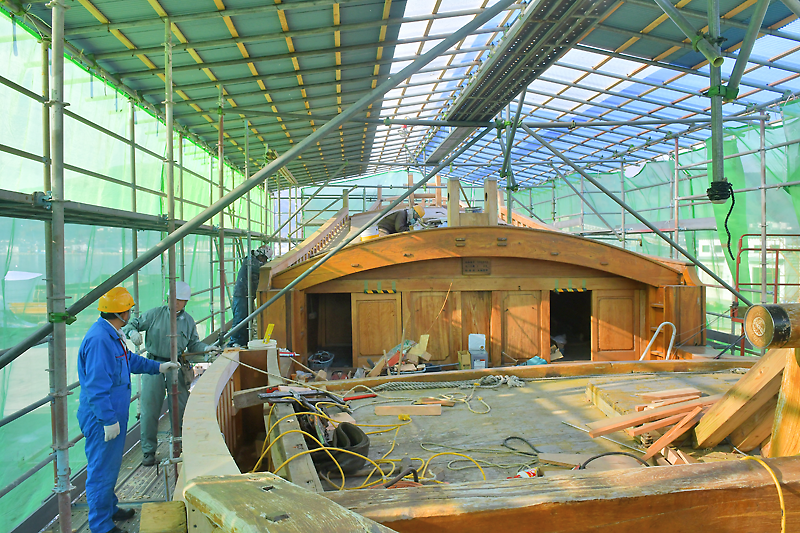 このほか、船中央部の梁の一部も取り換える。陸上展示を見据えて、雨水が抜けやすいように施すなど、木造船の技術や文化を後世に残すための工夫も重ねる。