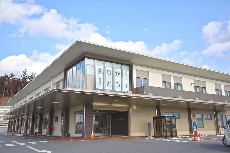 陸前高田市高田町の県立高田病院(田畑潔院長)は2日、向かいあって立つ高田小学校(金野美惠子校長、児童173人)がこのほど医療従事者への感謝のメッセージを校舎の窓に張ったことを受け、同院2階の窓に「ありがとう」という返礼メッセージを張った。新型コロナウイルスの収束が見通せない中、病院関係者は「地域とのつながりを強く感じとる機会となった。みなさんの期待に応えたい」と誓いも新たにしている。