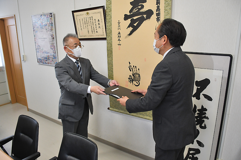 審議会は関係団体代表や有識者らで構成。今月中旬、本年度2回目の会合を開き、計画案に関する意見を交わした。25日は、小山会長が市役所を訪れ、戸羽太市長に審議結果を反映させた修正案を答申書として提出した。