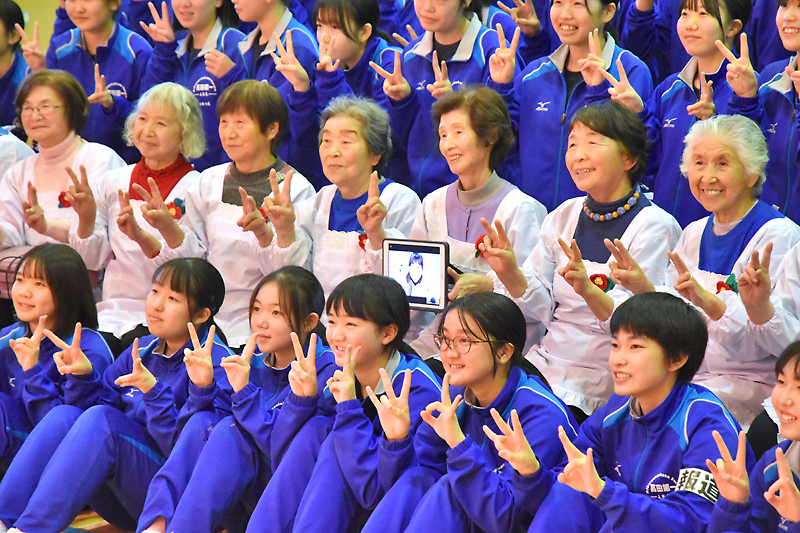 終わりには、生徒と住民らが輪になって『〜世界中の誰かのために〜』を踊った。2年ぶりの共演を喜び合い、震災後の住民らの心を支え続けた明るい曲調に合わせ、全員で元気に体を動かした。