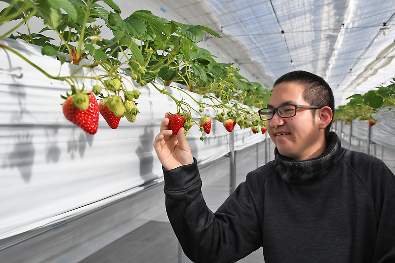米田所長は「利用者が熱心に作業し、現時点では順調に生育している。栽培のプロではないが、『おいしいイチゴを地域の人たちに食べてもらいたい』という思いは強い。イチゴ狩りシーズンに入ったら多くの人に来てほしいし、工賃アップにもつなげたい」と見据える。