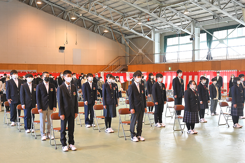 来賓祝辞、祝電披露に続いて校歌が紹介され、新入生たちが響き渡る歌を心に刻み、3年間の日々を大切にしながら過ごしていくことを誓った。