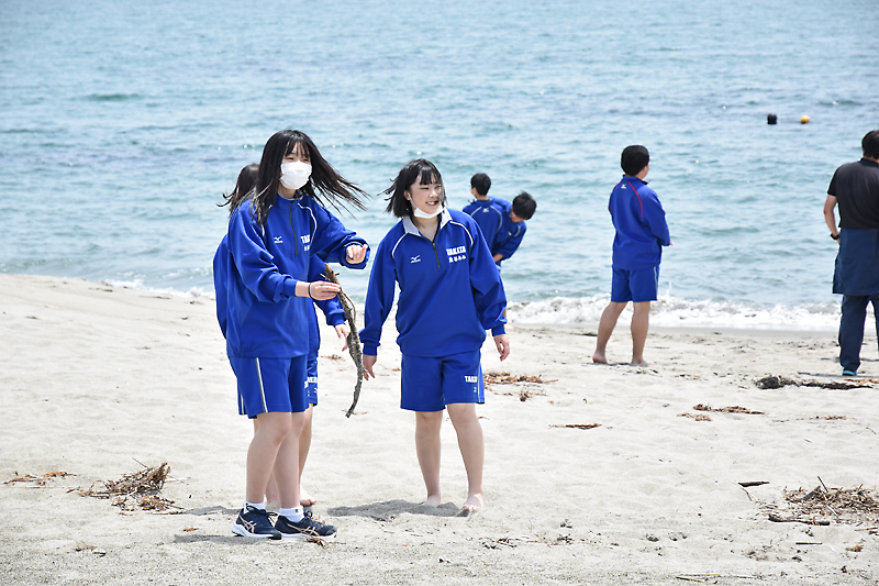 清掃活動は、同校独自のキャリア教育「T×ACTION PROJECT(タクションプロジェクト)」の一環で実施。復興や社会貢献、地域振興のあり方を探究する取り組みで、初めて同海水浴場で実施した。