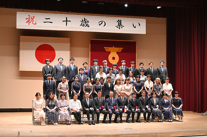 成人年齢は、今年4月1日の改正民法施行で18歳に引き下げられた。3年ぶりの夏開催となる今回、対象者は20歳到達者で変わらないが、名称を「二十歳の集い」に変更。ソーシャルディスタンス確保、マスク着用など新型ウイルス対策を徹底して開催した。