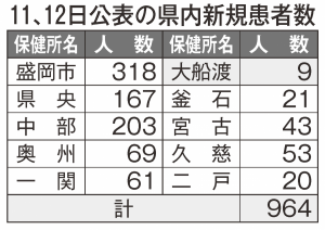 クラスターは2日間で新たに、盛岡市内の高齢者施設で発生。公表済みのうち、10件で患者数が増えた。