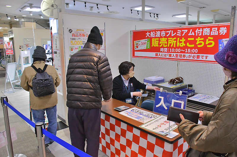 大船渡市が新型コロナウイルス対策の独自支援策として発行した第2弾のプレミアム付商品券は、今月12日までに発行数の89・3%に当たる3万347セットが販売された。1セット7000円分の商品券を5000円で購入でき、2億1243万円分が流通。2月上旬時点の換金状況は1億250万円分で、冬期販売や燃料費高騰を反映してガス・ガソリン・石油販売の利用割合が高い。商品券の利用期間は3月5日(日)までで、市や大船渡商工会議所では忘れずに利用するよう呼びかけている。(佐藤 壮)