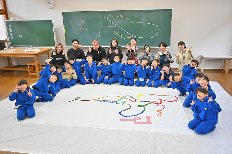 仲間との絆 絵で深める 盛小で「むすびの旗」制作 東京藝大生らが指導 〝大船渡の色〟テーマに(別写真あり)