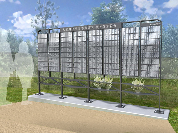 市によると10月末現在、市民の震災死亡者は354人で、行方不明者は79人。関連死は83人。芳名板の犠牲者氏名は、遺族から意向が確認できた場合のみ掲示し、地区・世帯ごとの50音順が基本とする。現段階で355人が掲示される見込みで、市内で犠牲となった市外在住者4人も含む。