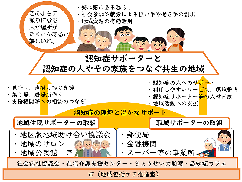 県によると、総人口に占める65歳以上人口の割合を示した大船渡市の高齢化率は、今年9月1日現在で39・2%。県内全域の34・8%を上回っている。数年後には高齢者の5人に1人が認知症か認知症の症状が疑われるとされる中、誰もが認知症になっても安心して住み慣れた地域で暮らし続けることができるまちづくりの重要性が増している。