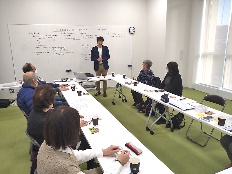 船戸さんが進行役を務め、事前に聞き取りしていた自治会の現状、課題を共有。草刈りを含めた清掃活動に関しては、参加者不足の悩みが浮き彫りになった。