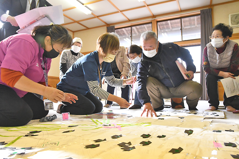 高齢者の避難を考える 広田町の泊お楽しみクラブ 災害想定しマップ作り