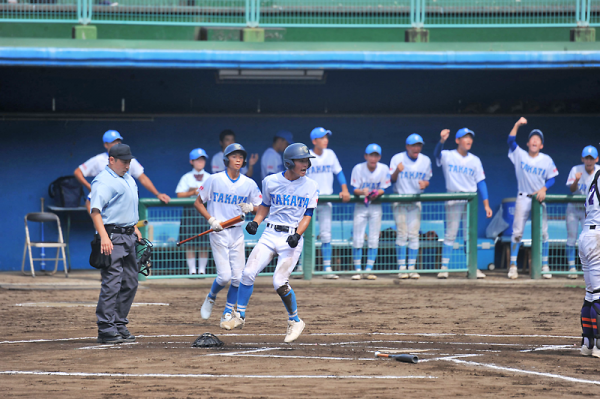 互いに無得点が続き迎えた八回、高田は先頭の3番・清水が右中間への二塁打を放つと、皆川も右前打で続いた。さらに、四球で無死満塁と同点の絶好機をつくったが、後続が三振、併殺打に倒れチャンスを生かせず。最終回の攻撃も3人で抑えられ、1─4で敗れた。