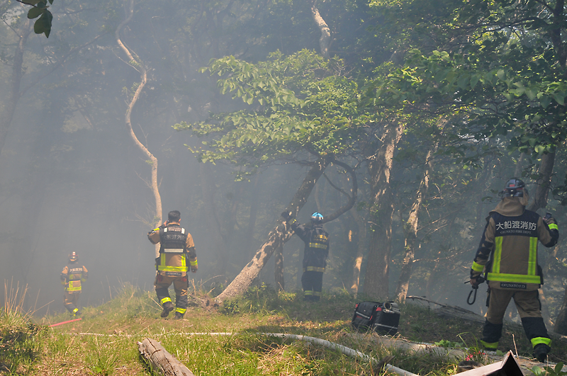 5月26日、大船渡市三陸町越喜来の首崎の市有林で林野火災が発生。大船渡消防署と市内全域の消防団が出動する大規模な消火作業となった。およそ9㌶を焼損し、6月4日に鎮火が宣言された。