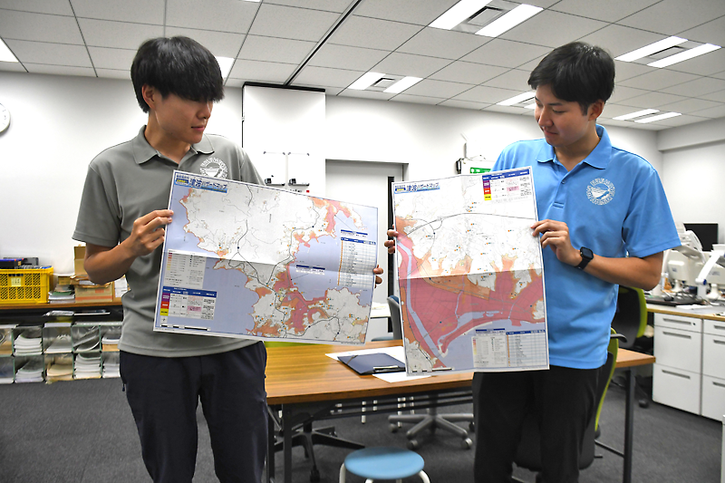 津波避難に生かして ホームページで公開 裏面に啓発情報記載 市がハザードマップ作成