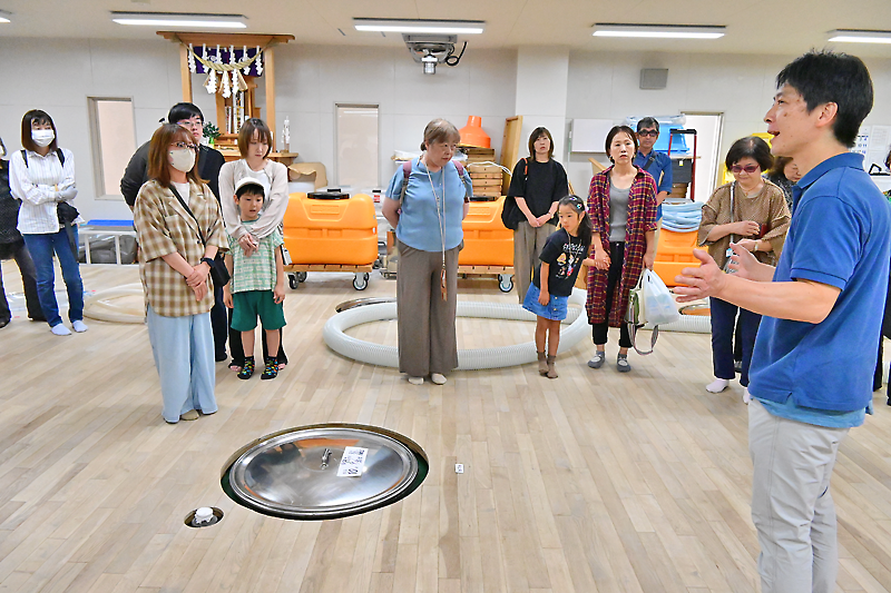 蔵ではこのほか、見学会も行われ、杜氏の金野泰明取締役が同社の歴史や東日本大震災からの復旧・復興を交えながら酒造りを紹介。来場者らは、先月下旬に仕込み作業が行われたタンクの中を特別に見せてもらい、もろみの状態や香りを確かめた。