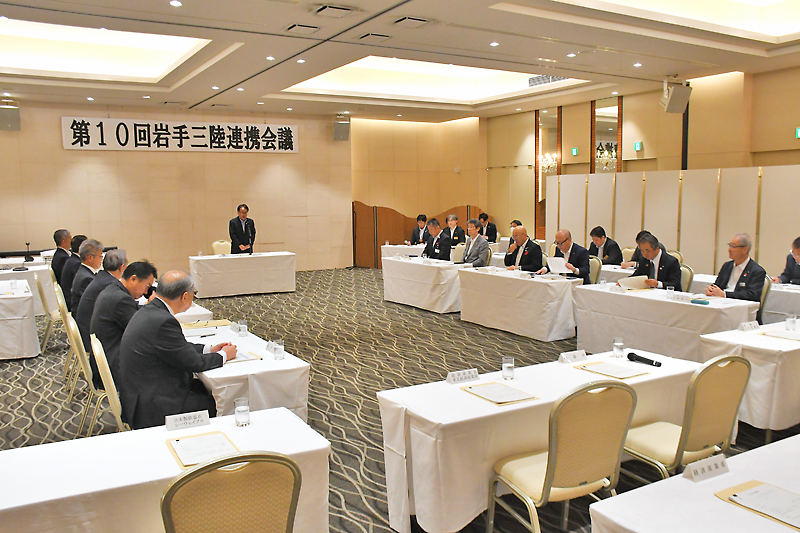 気仙3市町を含む本県沿岸の13市町村で構成する岩手三陸連携会議(議長・佐々木拓陸前高田市長)は20日、同市高田町のキャピタルホテル1000で開かれ、三陸共通の課題や地域を盛り上げる足並みをそろえた取り組み、国への要望事項について確認した。東京電力福島第一原発のALPS処理水海洋放出に関する現状や、第2期復興・創生期間後の見通しについて、国の担当者らから説明を受け、自治体側の意見・要望も伝えた。(高橋 信)