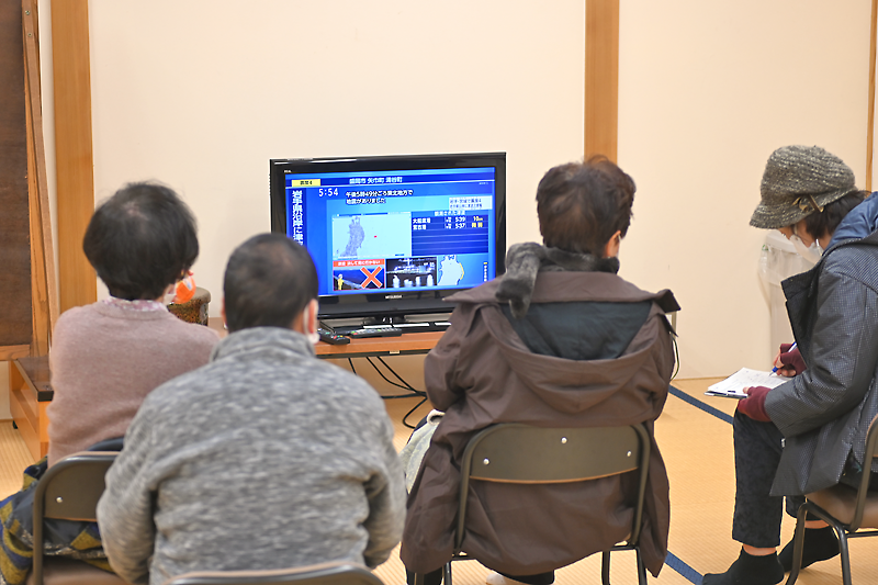 綾姫ホールには、数人の住民らが身を寄せ、暖を取りながら地震、津波情報を伝えるニュースを眺めた。宮野地域の70代男性は「ちょっとのことでも、念のため避難した。自分を守れるのは自分だけだ」と気を引き締めていた。