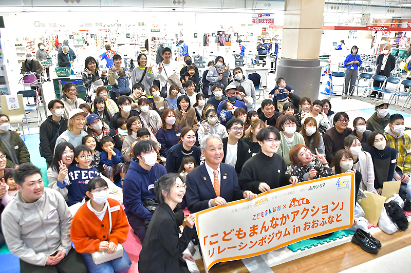 大船渡市主催、こども家庭庁共催による「こどもまんなかアクションリレーシンポジウムinおおふなと」は23日、盛町のサン・リアショッピングセンターで開かれた。県内では初開催で、テレビをはじめ数多くのメディアに出演している「てぃ先生」による特別講演などを聞こうと、多くの親子連れが来場。サン・リア内に整備した市こども家庭センター「DACCO(だっこ)」の利用が定着し、令和6年度の市出生数が前年度を上回った中、さらなる子育て環境充実を誓い合った。(佐藤 壮)