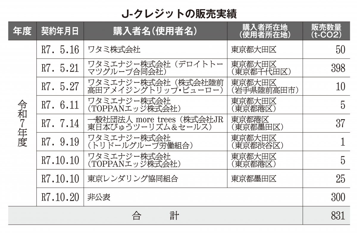 J─クレジット販売好調 7年度実績(10月末時点)831㌧ 市が創出 岩手銀行と連携しPR強化へ