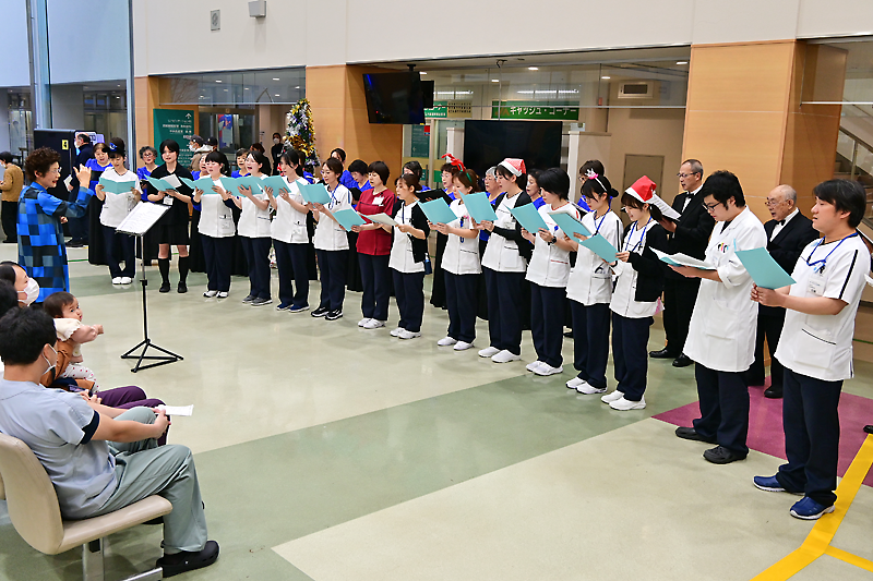 ▲ 大船渡さんご合唱団と病院職員有志らがクリスマスソングを披露