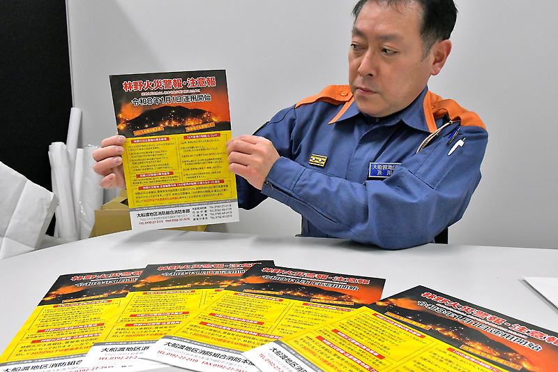 大船渡市と住田町を管轄する大船渡地区消防本部では、運用を知らせるチラシを作成。発令時の行動として▽火の取り扱いに十分注意する▽火災を見つけたらすぐ通報する▽延焼の危険がある時は早めの避難を▽最新情報を確認する▽地域で声を掛け合う──を挙げる。