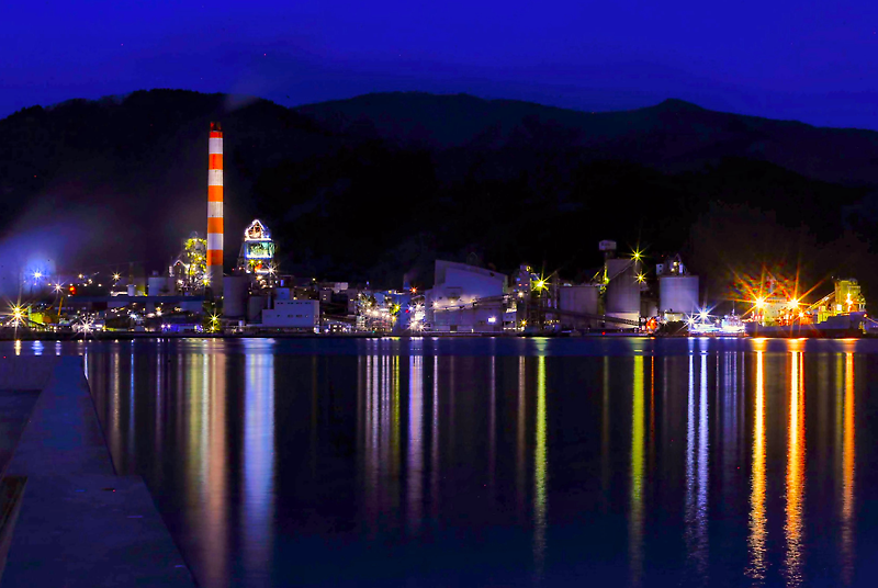 海面にも冬のきらめき 太平洋セメントに電飾ともる