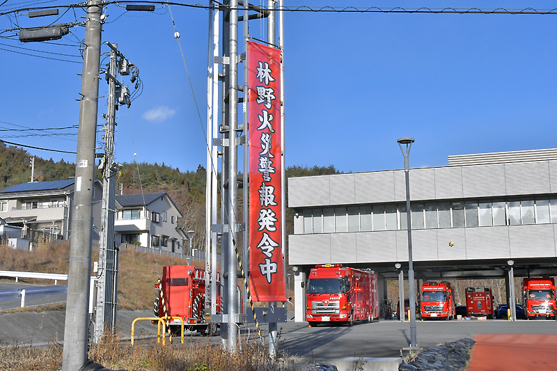 大船渡市内では警報発令を受け、大船渡地区消防組合本部や大船渡消防署の機能が入る盛町の市防災センターに警報を知らせる懸垂幕が設置された。同8時30分ごろから消防関係車両が巡回して警戒を呼びかけるとともに、屋外での火の使用がないかも目を光らせた。