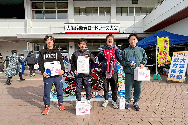 大船渡市盛町内などをコースとして11日に行われた「大船渡新春ロードレース大会2026」(同実行委など主催)の駅伝の部一般男子で、大船渡陸上倶楽部メンバーや大船渡にゆかりのある選手らで構成するチーム「綾里フラペチーノ」が2位入賞を果たした。同女子では、地元出身選手を含む「Team Bright」が3位入賞。中学男子では、大船渡一が3連覇を逃したものの、クラブチームが台頭する中で4位と健闘するなど、気仙勢の活躍が大会を盛り上げた。