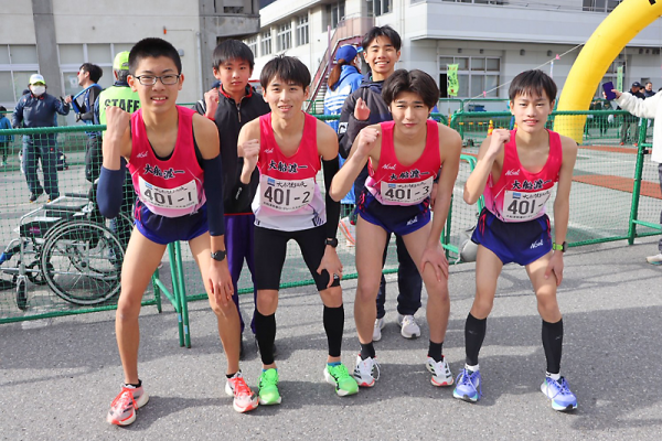 1区は主将の佐藤勇希選手(3年)が3位につけると、2区の長谷川翔太選手(2年)が一つ順位を上げた。3区の熊谷柊翔選手(3年)、4区の佐藤咲弥選手(同)はバスケットボール部で培った脚力で食らいつき、4位でのゴールとなった。