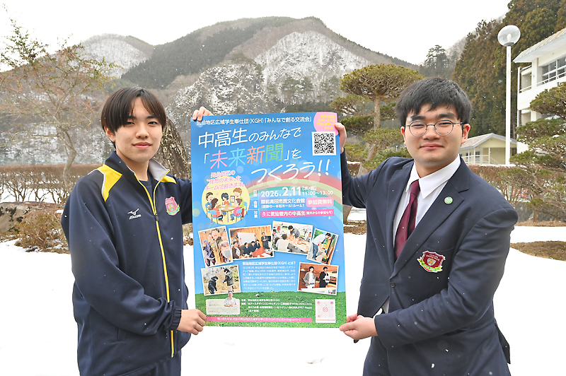 気仙在住の高校生らで構成される「気仙地区広域学生奉仕団」(金野恵人団長、学生メンバー5人、以下KGH)は11日(水・祝)、陸前高田市高田町の市民文化会館・奇跡の一本松ホールで中高生を対象としたワークショップを開く。「30年後の未来、古里にどうあってほしいか」を思い描き、数人のグループで「未来新聞」を制作するというもので、10代同士の相互交流を図るとともに、若い世代の考えを内外に広く知ってもらう機会にもする。